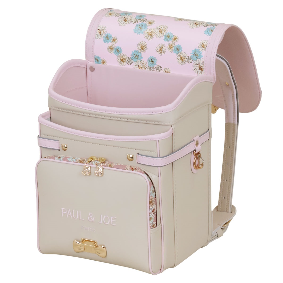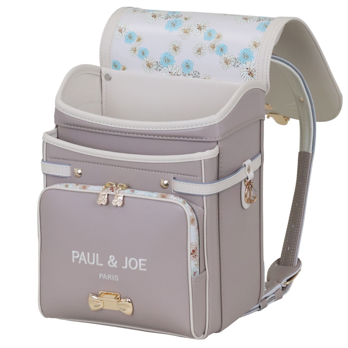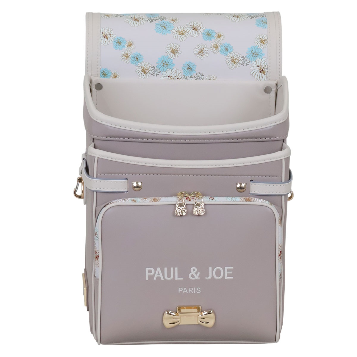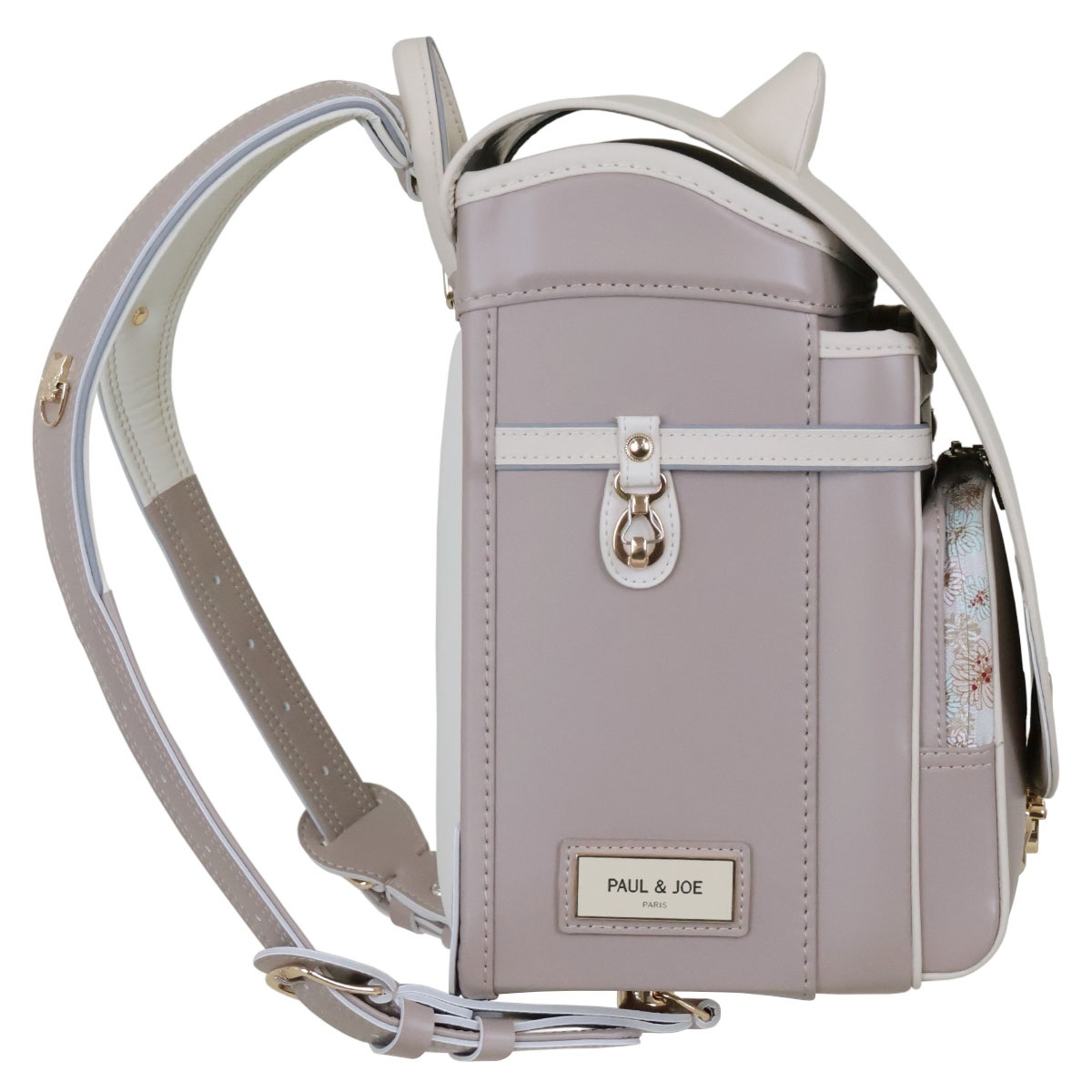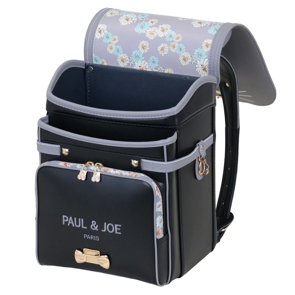 思わず目を惹く、耳のついたネコ型デザインの半かぶせデザインランドセル
