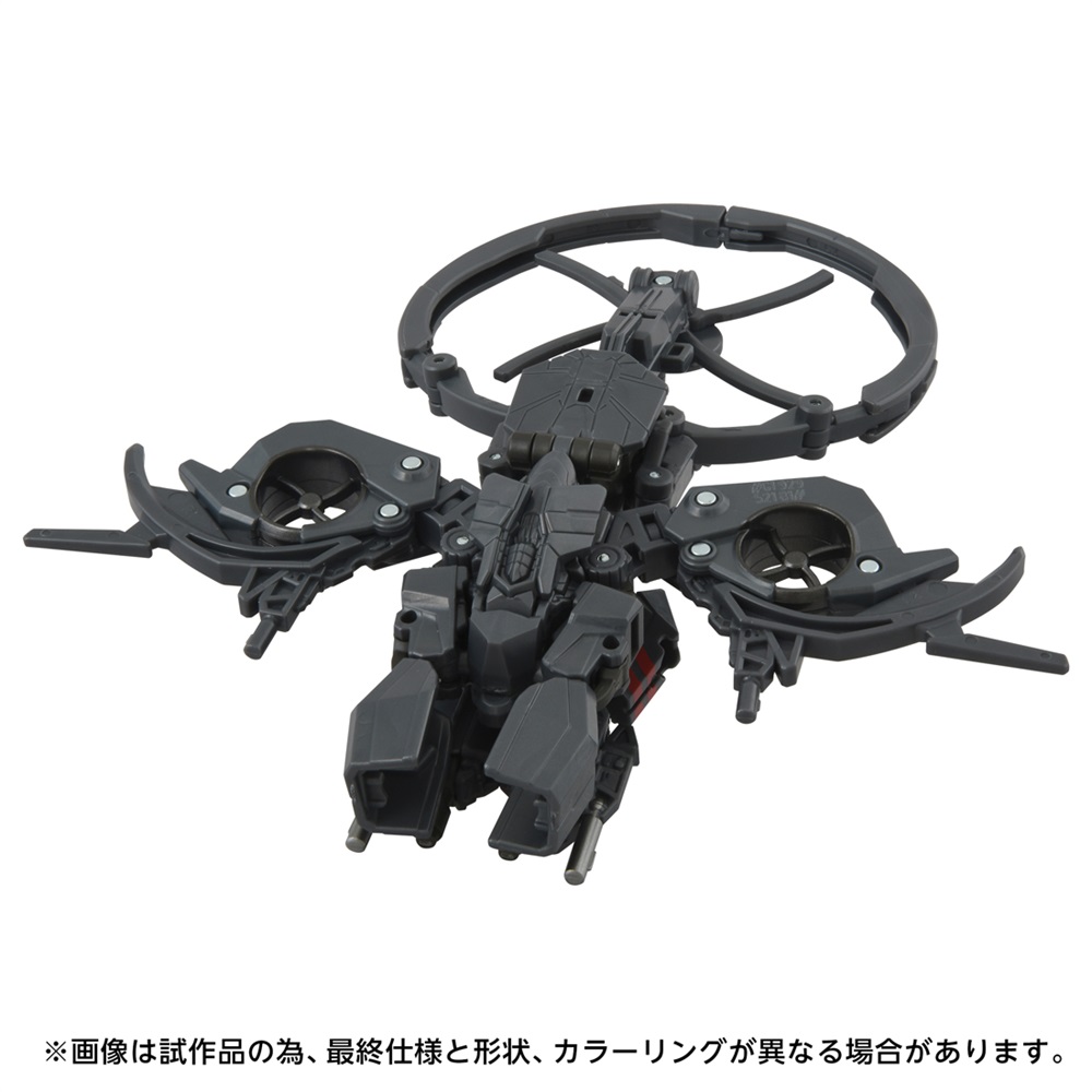 ビークルモードでは回転するメインローターを機能させながら、映画本編でも印象的だったロボットモードでの特徴的な細い多脚デザインを再現。