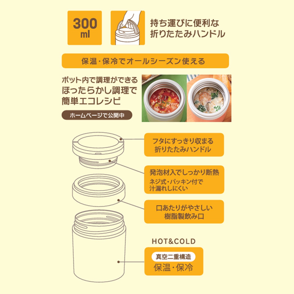 ハンドル付きで持ち運びに便利なスープジャー