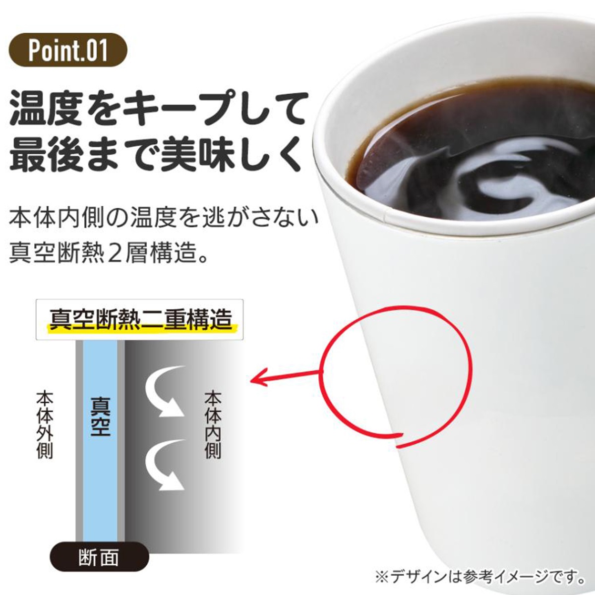 真空二層構造でしっかり温度をキープしてくれるので、最後まで美味しくいただけます。