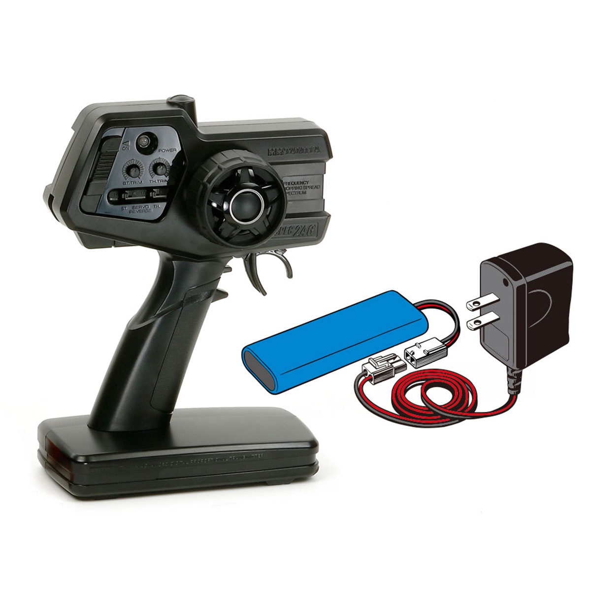 走行用の7.2Vニカドバッテリーや専用充電器も付いて、箱から出してすぐに遊べます。