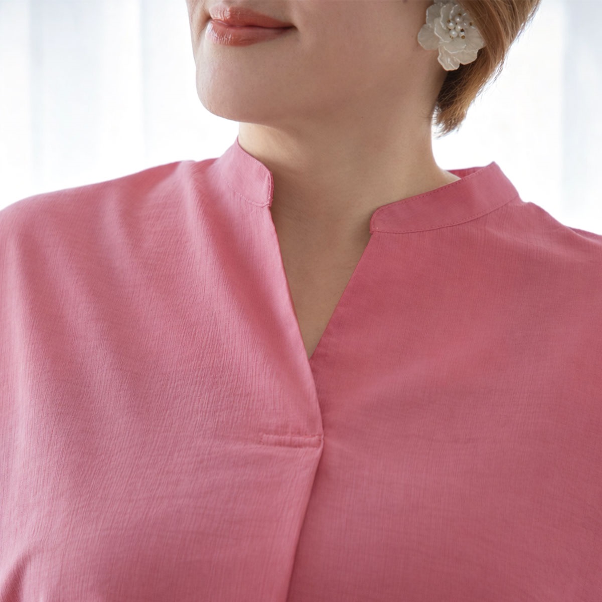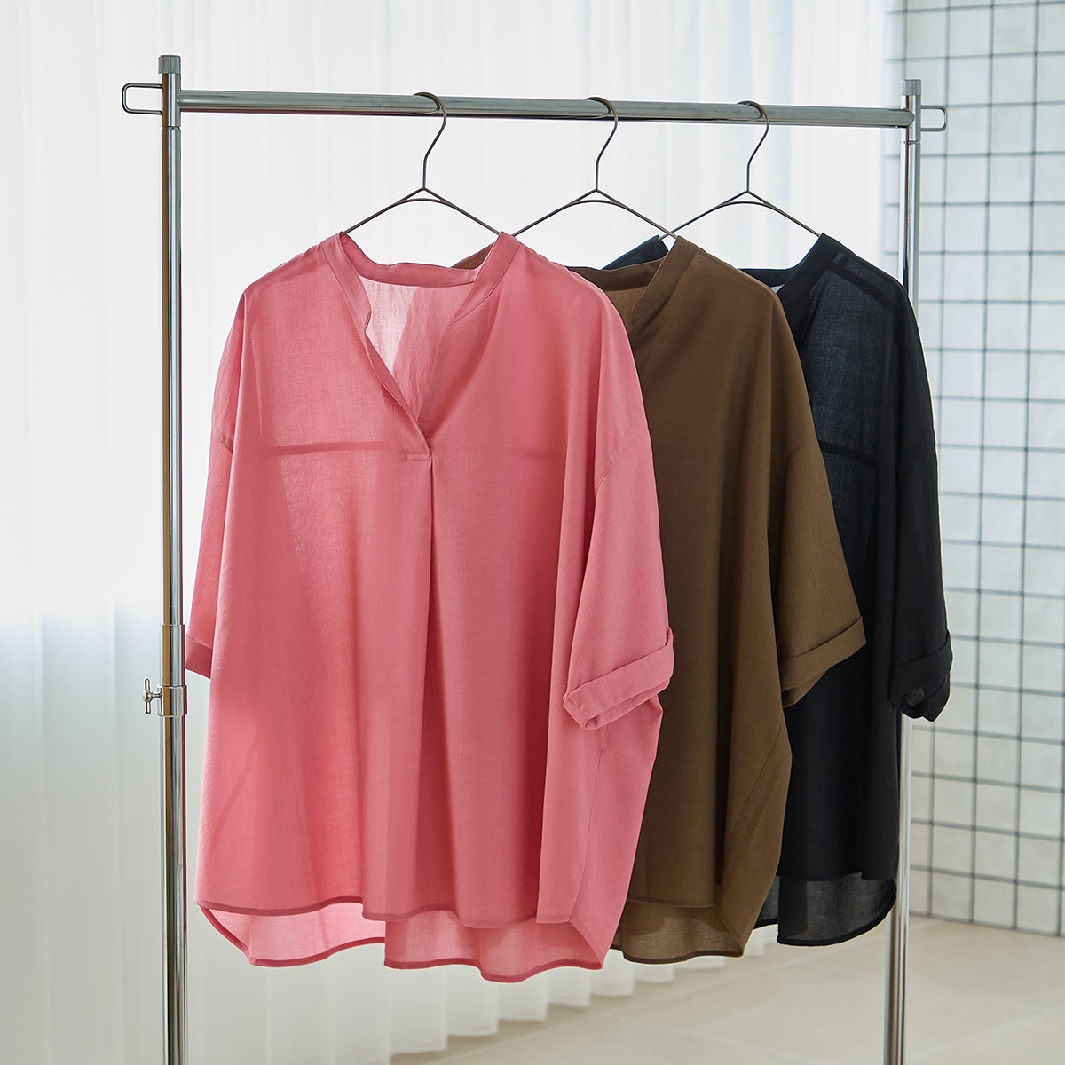 ポイント①:スキッパーデザインで首元スッキリ小顔見え