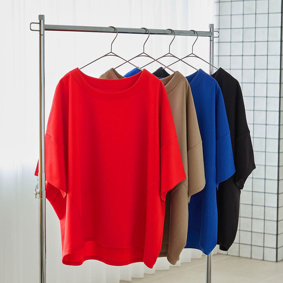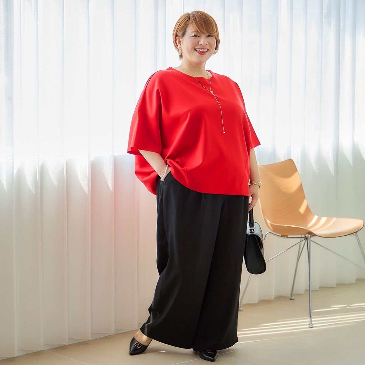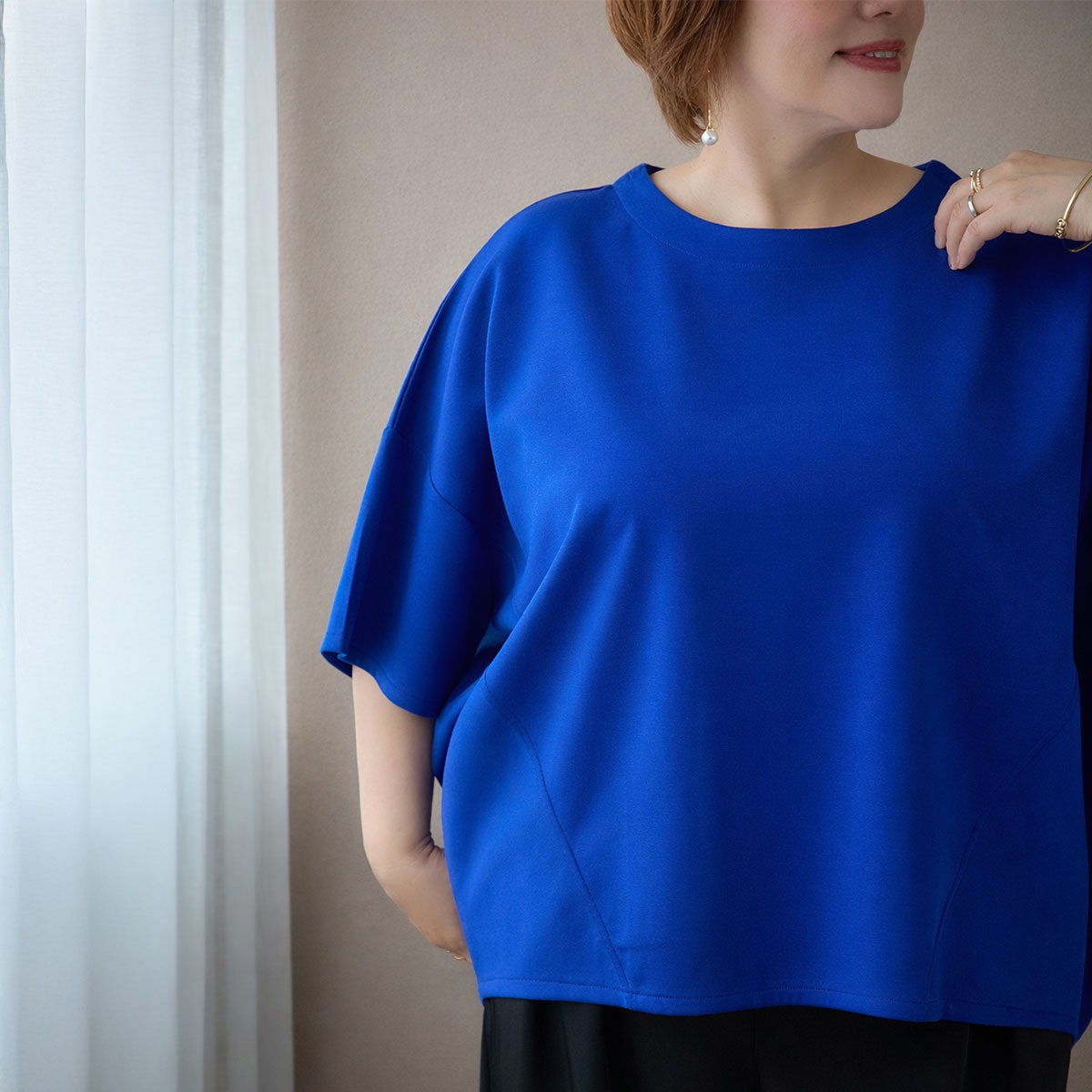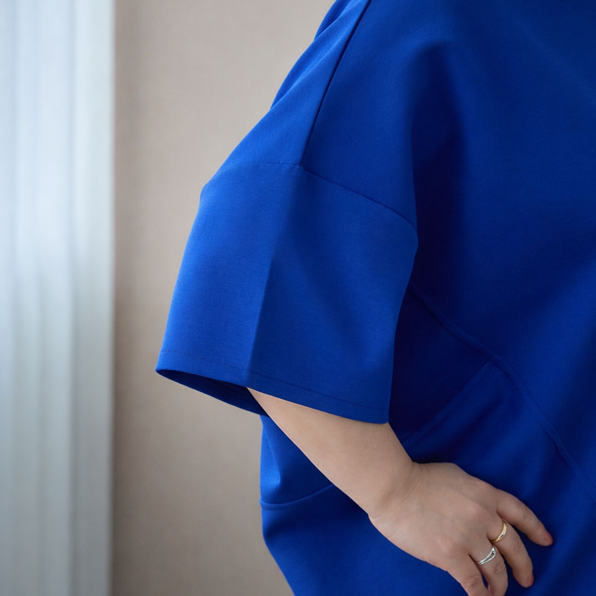 ポイント③:ゆったりコクーンシルエットで360度体のライン拾わない