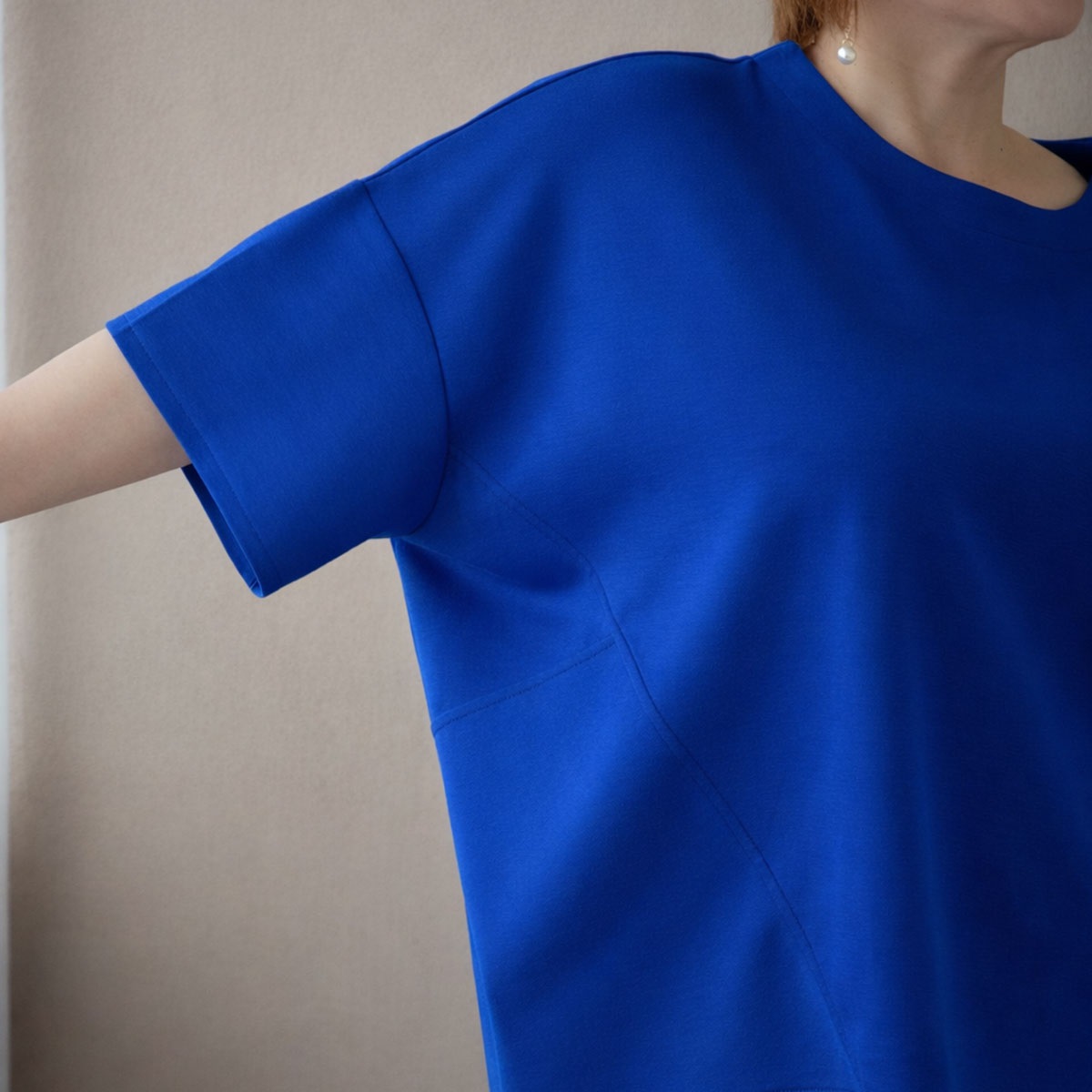 ポイント②:長め袖丈で二の腕しっかりカバー!