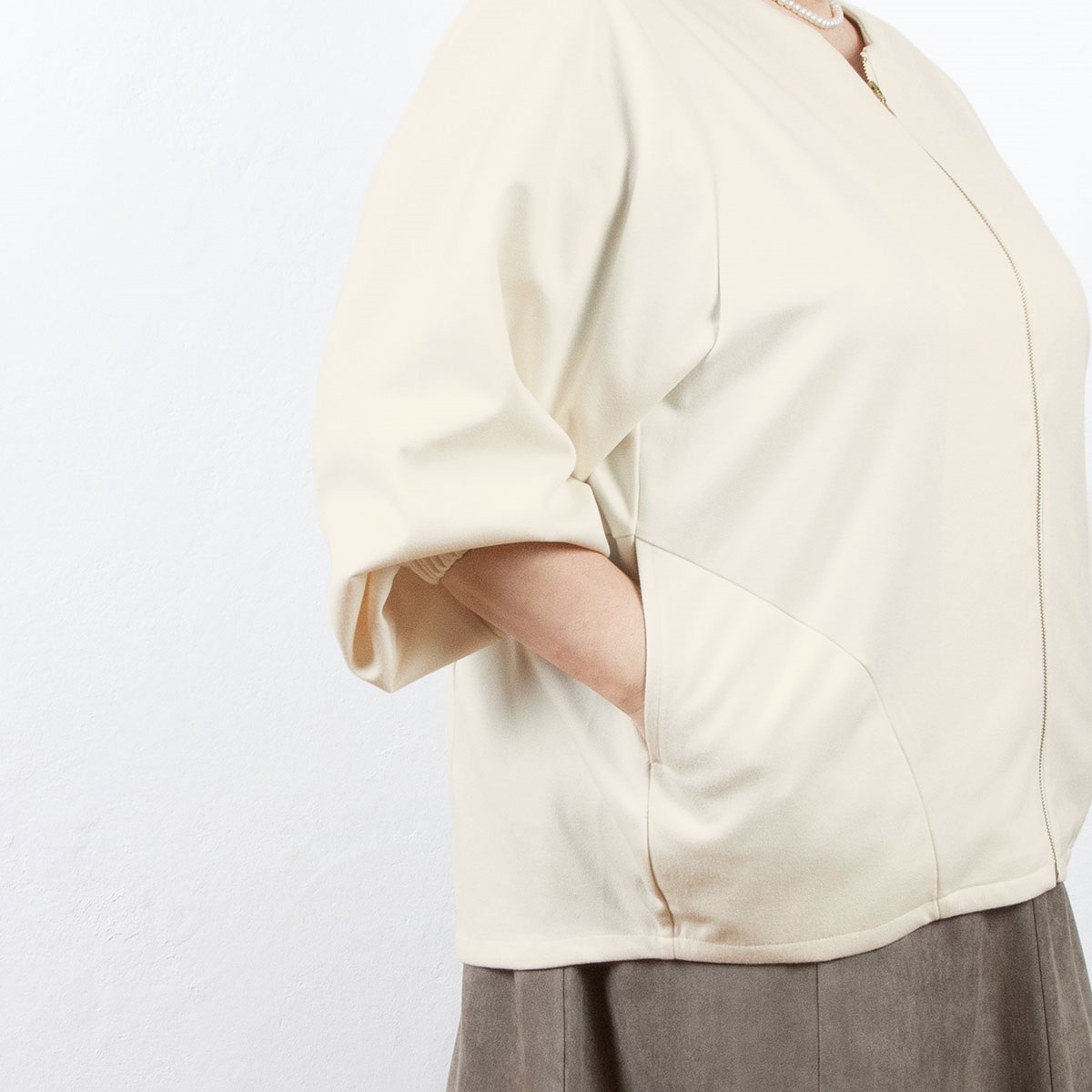 人気インフルエンサー【ぽっちゃりけいこ】コラボ、秋の着やせコーデ! ①ウールタッチのスッキリ・アウター 冬までこの1枚で活躍します ②ボリューム袖で腕回りを華奢に見せます ③サイドの切り替えが縦ラインを強調しスッキリ見え