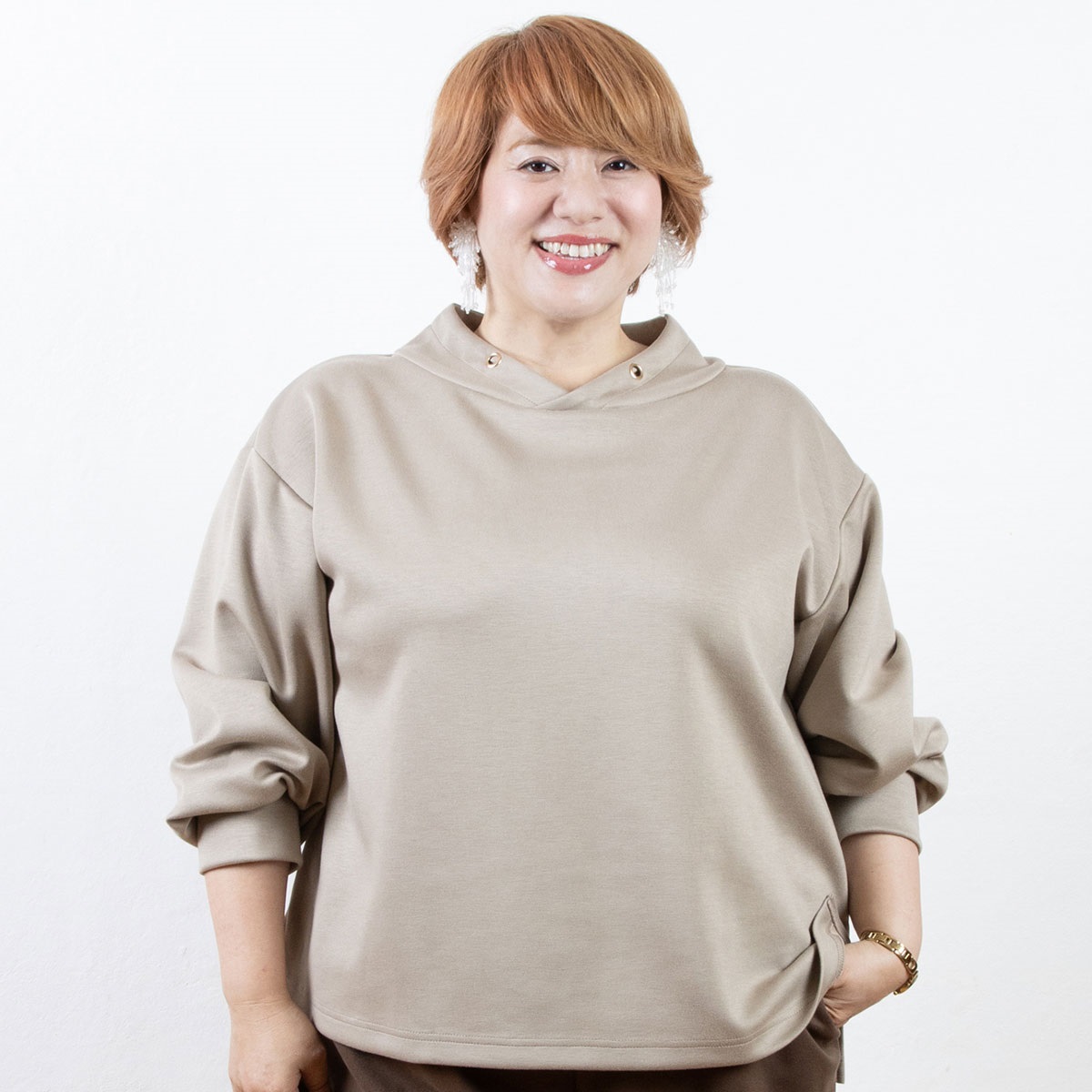 人気インフルエンサー【ぽっちゃりけいこ】コラボ、秋の着やせコーデ! ①やわらか素材の軽量アウター たまらないタッチ感です ②フード風デザイン 前から見るとフード付き、でも実はフードがないから、上着を来た時にごわつきません ③裾のサイドスリットで動きやすい