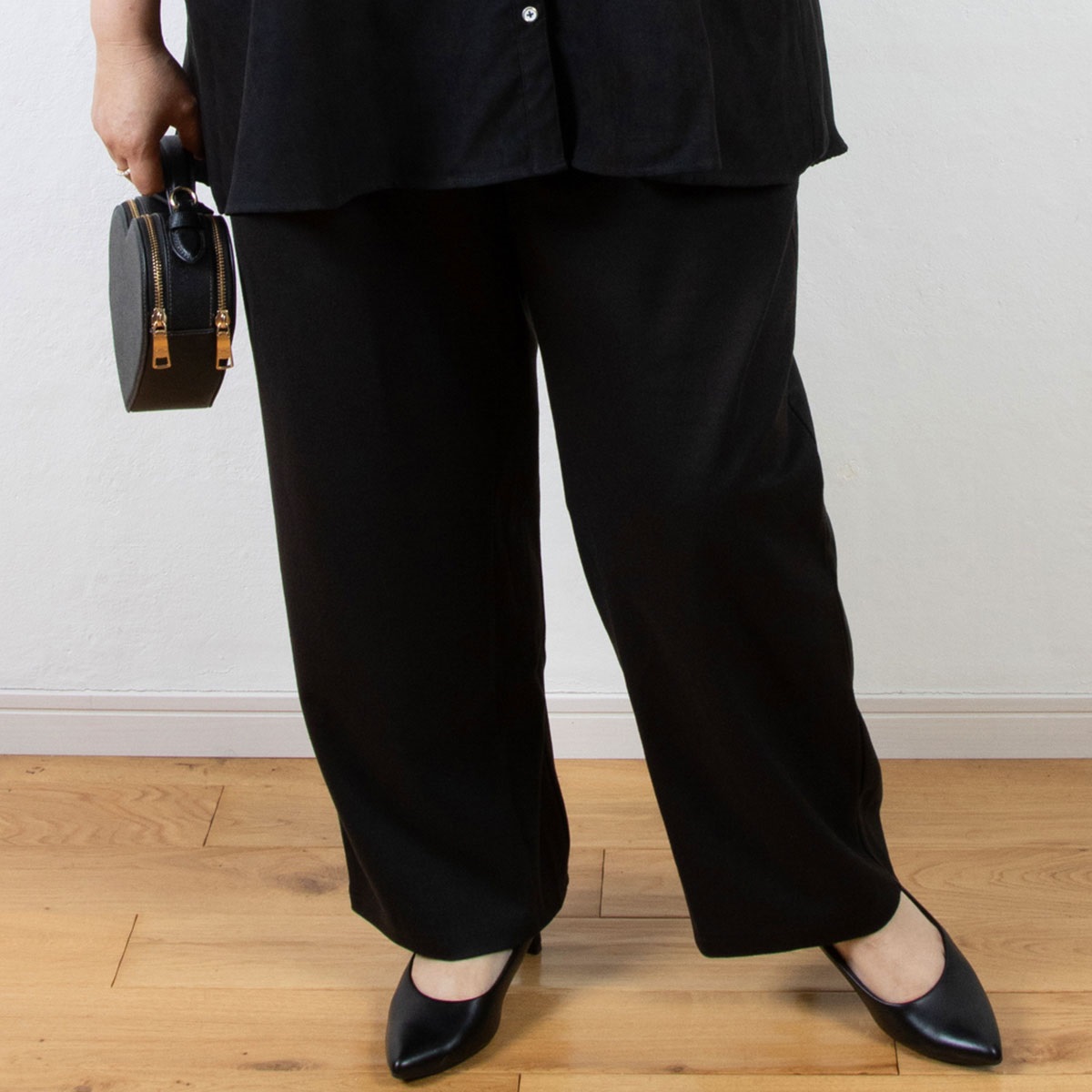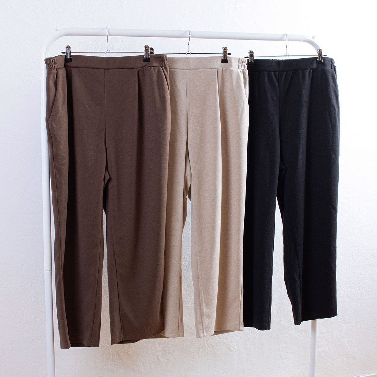 人気インフルエンサー【ぽっちゃりけいこ】コラボ、秋の着やせコーデ! ①ウールタッチのやわらか素材ボトム 冬までこの1枚で活躍します ②ゆったりテーパードデザインで、脚長効果 ③股ズレ軽減仕様で股ずれしにくい