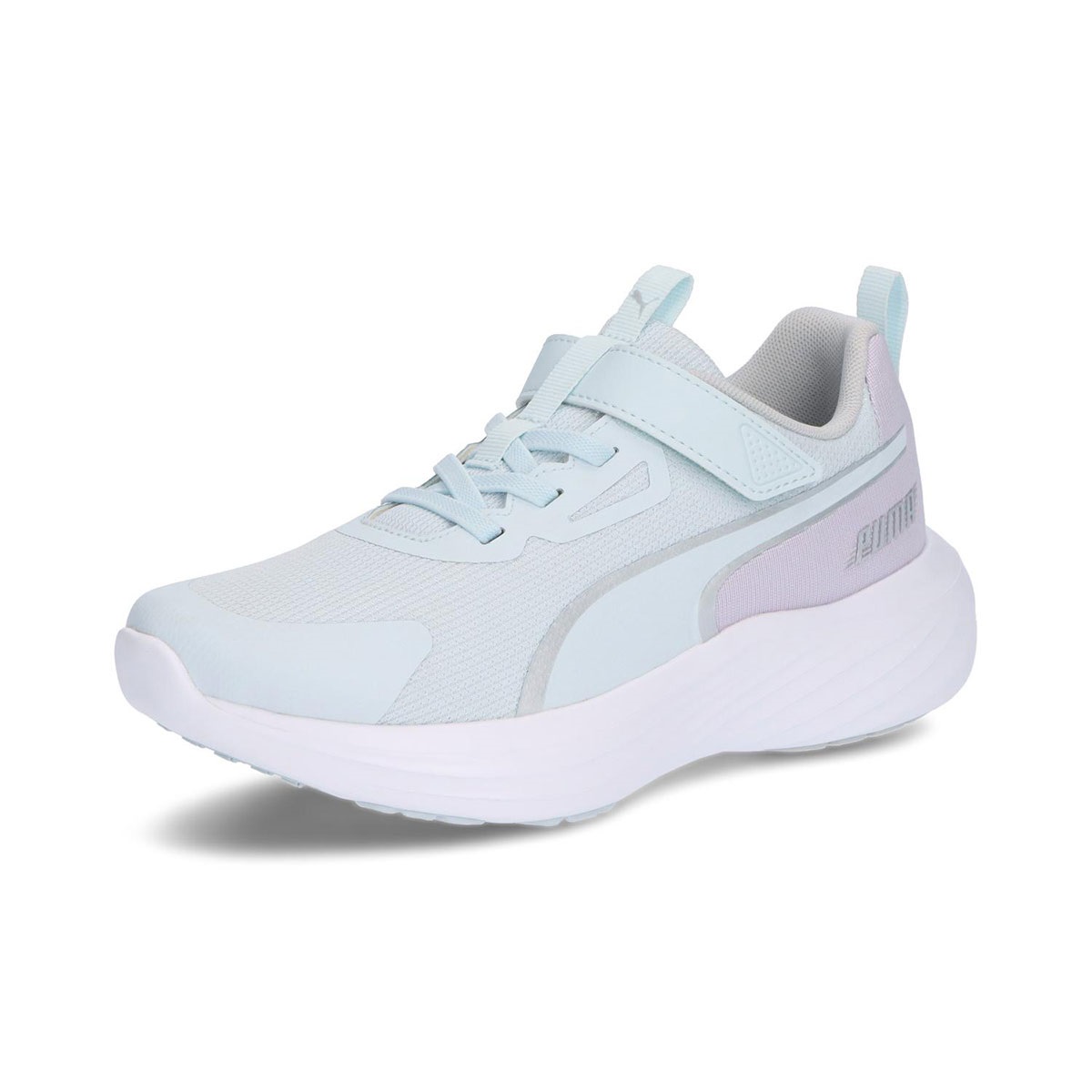 軽量EVA素材を使用しながら厚底のミッドソールを開発。スムーズな地面の蹴りだしで短時間でスピードに乗る事をサポート、耐久性をサポートするつま先のトゥーバンパーやシュータンと同調してスムーズな着脱をサポートする1ウェイベルトクロージャーを搭載し、子供達のデイリーから運動会の使用まで幅広く対応。