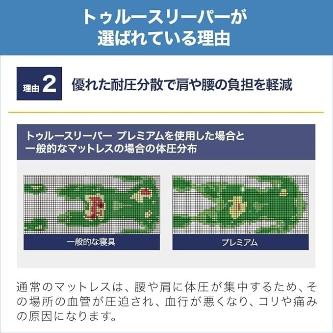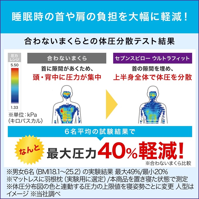 『トゥルースリーパーセブンスピローウルトラフィット』は12本のスリットが入ったウルトラフィットカット構造により、従来品に比べ横向き寝のフィット性が向上しました