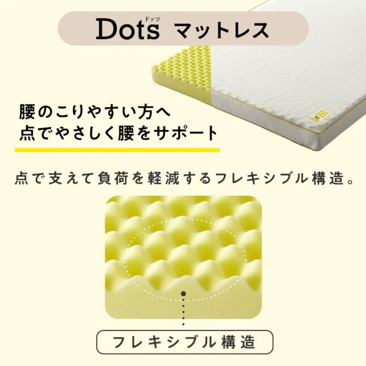 『睡眠Labo』で人気の『Dotsヘルシーマットレス』の価格で『Dotsヘルシーピロー』とセット限定の『シーツ・ピローケース』の4点をセットしたお買い得な限定商品です。